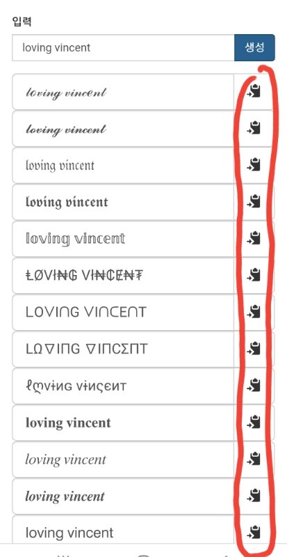 그다음에 빨간색 동그라미 친 버튼 누르면 해당 글꼴로 문구가 클립보드에 복사돼ㅎㅎ