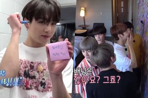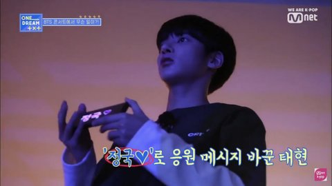 정국선배님 짱팬답게 정국 선배님이 써준 응원글 바로 찾아내고는 진짜요?! 하고 놀라는 태현이