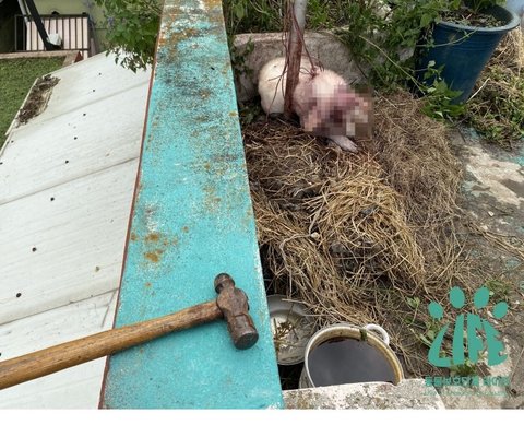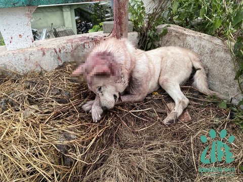 태어난지 갓 2-3개월 된 새끼 앞에서 어미개를 잔혹하게 살해했어요.