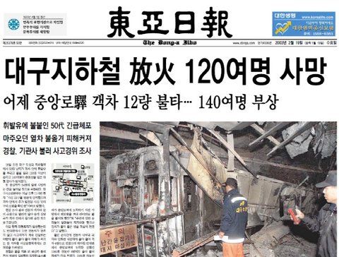 2003년 2월 18일, 대구 지하철 1호선 중앙로역에서 발생한 방화 사건.