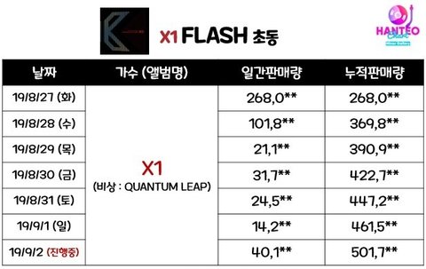 첫 데뷔앨범에서 초동 하프밀리언을 달성했던 엑스원