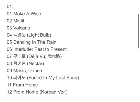 아래 사진은 Pt.1 곡 리스트
