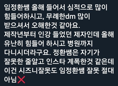 원래도 악플같이 심적으로 스트레스를 많이 받으셨었나봐... 근데 이번에 오해하시면서 계폭 하신건지ㅠㅠ 걱정된다 이번 오해도 오해인데 스트레스 받으시고 힘들어하신다는게ㅠ 짹에 보니까 이런 내용의 글이 많더라고...