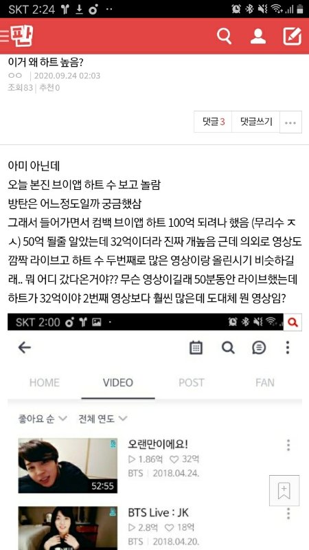 이거 글 써었는데... 딱히 이유는 없는거야?? 그냥 지민도 심심해서 브얩 킨거고..?? 여기서 막 라지벌랄라를 말했다거나 엄청난 브얩이 아닌거야?