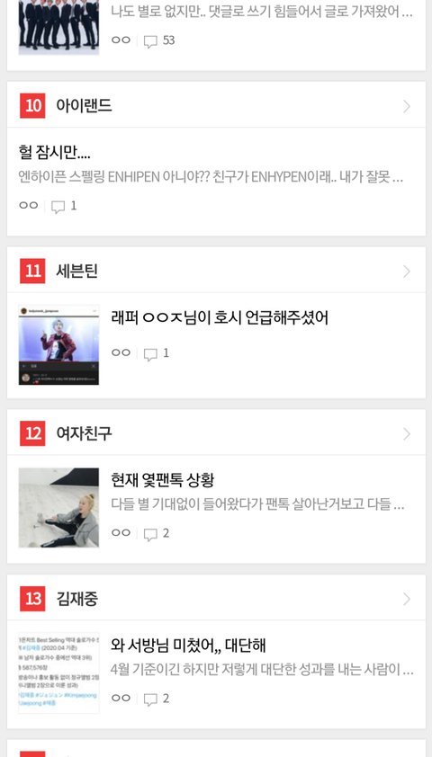 랭킹팬톡 12위..ㄷㄷ