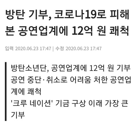 진짜로 공연업계에 12억 기부.. 공연업계에 관심 가져주는 사람 정말 없었는데 진짜 힘이 될 듯