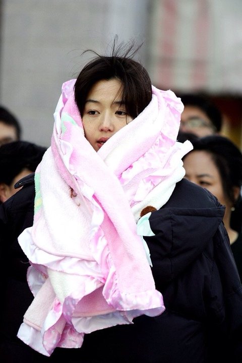 2011년 <도둑들> 촬영 할 때도 목에 두른 저 담요는,