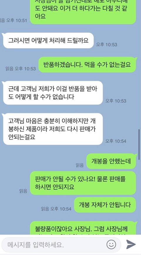 개봉한 상품이라 안된다고 함. 네? 개봉자체가 안된다구요.