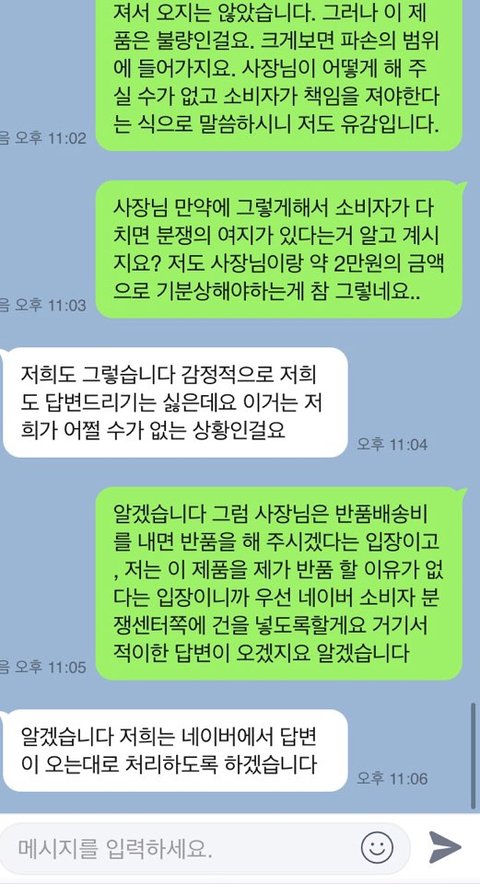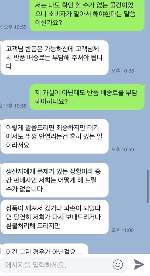 자기네들은 판매 대행이라 책임질 수 없고 배송비를 내가 내면 환불해주겠다고함.