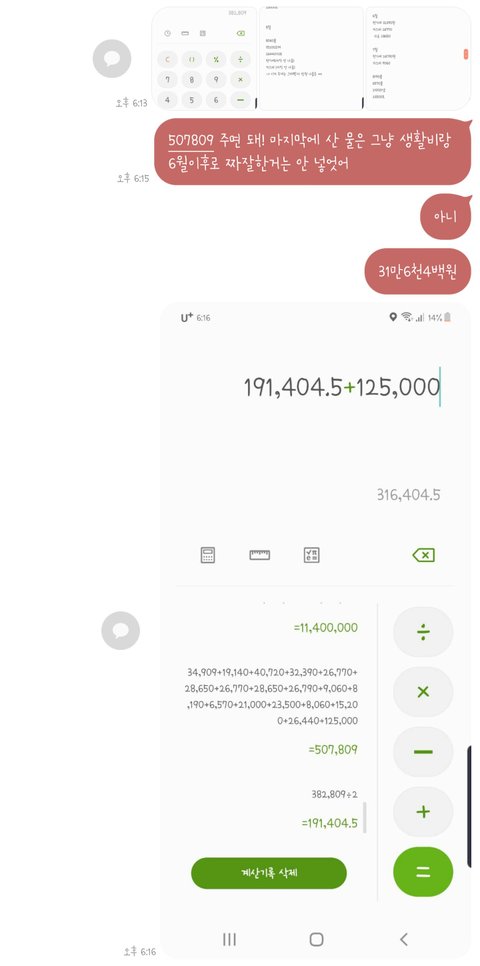(이 부분은 처음 생활비 얼마 나왔다고 했을 때 말을 하는거에요.)