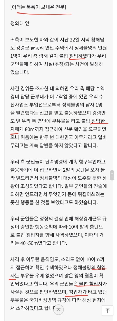 북한은 표류하다 떠내려간 우리나라 국민을 '침입자'라고 명명했는데 대한민국대통령과 언론은 '월북'했다면서 범죄자 취급하네 ㅋㅋㅋ월북인데 북한에서 침입자라고 하겠어? 자국민 보호도 못해주는 국가를 뭘믿고 일을하겠어 죽은분만 불쌍ㅜ