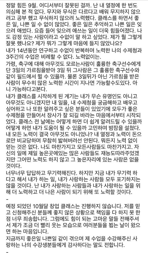 어처구니 없고, 화가나서 변호사도 알아보고 문의해봤지만 소송으로 가기엔 이번 클래스 수강생 5명만해서는 금액이 1000만원이라 소액이고, 클래스 자체가 주관적이라 선생님 본인이"난 최선을 다했어요"라고 하면 어쩔 수 없다고 함...