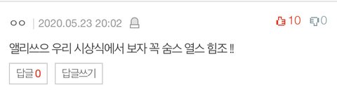 ++ 팬톡에 이 댓글 쓴 앨리스 없나봐ㅠ
