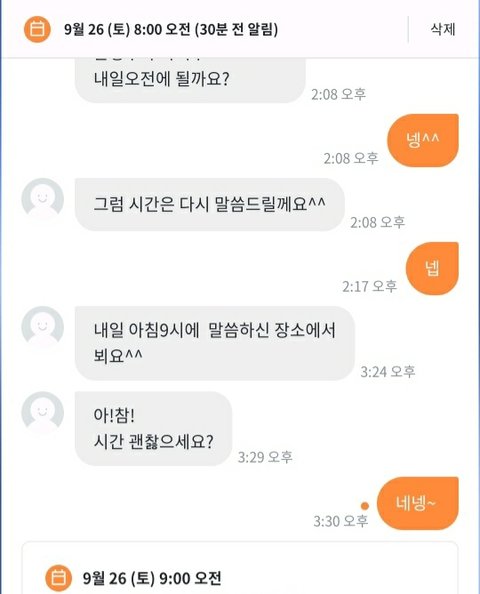 구매자 직장때문에 토요일 오전 9시 일찍밖에 안된단 말에