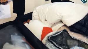캐리어에 들어간 알제이 인형과 알제이 파우치