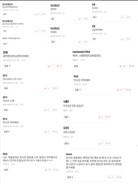 여기 밑에 진짜 전소민 악플이랑 송지효팬들 만행 사진 올린다