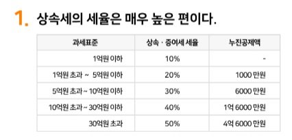 예를 들어서 부모님이 10억을 유산으로 물려줬으면 꽁돈이니까 3억을 세금으로 내라 이거지.