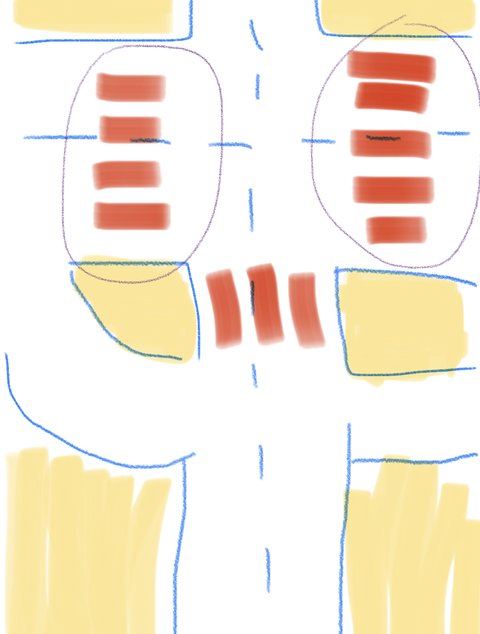 학교 이사하면서 사거리 지나야 갈수있는데 노란색은 인도고 빨간색은 횡단보도 보라색원은 내가 자주 다니는길이거든 친구랑가는데 사방에서 차가 꽉꽉막혀서 잇으니까 괜히 부담스러움ㅅㅂㅜ
