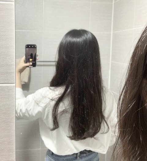 미용실에서 나온 후 약 50분 뒤에 촬영한 사진이고따로 빗질같은건 전혀 안했습니다심하게 부스스한 부분만 손으로 아주 약간 정리한 정도에요(옆머리는 안보이게 뒷머리만 찍은 사진이에요)