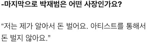 본인은 스스로 잘번다며 아티스트들이 올린 수입은 절대 가져가지않음