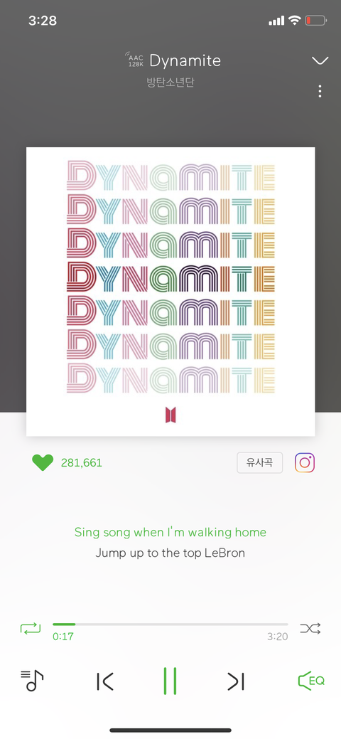왜 이렇게 좋냐.. 나 원래 방탄 노래 전혀 안 찾아듣는 사람인데 노래 너무 좋네.. 원래는 방탄팬덤이랑 우리팬덤이랑 사이가 좋았던 적이 없었어서 방탄 노래 절대 안 찾아들었음 그러다가 올해 우리 팬덤에 사건사고가 많았는데 그 일로 팬덤이랑 가수 의견 차이가 대놓고 말하진 않았지만 너무 극명했고 소통도 몇년 째 컴백 때 아니면 별로 없고 지쳐서 휴덕..? 중이었단 말이지... 근데 친구가 보여준 방탄 뮤비 보고 그 뒤로 자꾸 생각나서 요새 찾아듣는 중임... 중독성 에바야... 다이너마이트에 빠져서 DNA도 자주 듣는중..