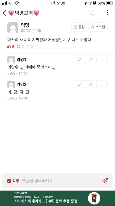 우리 학교 에타 익명고백 게시판에