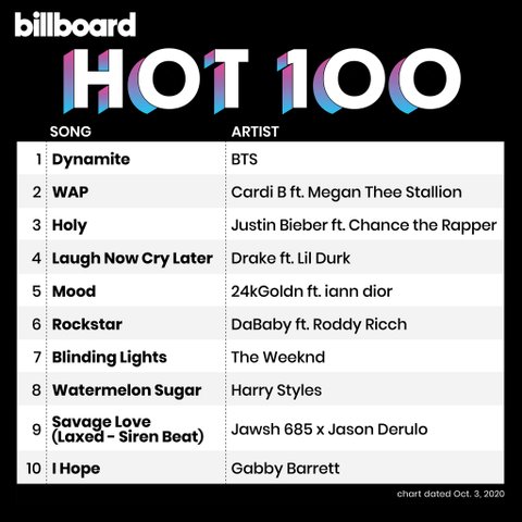 1위 방탄, 2위 카디비, 3위 저스틴비버, 4위 드레이크 라인업무슨일ㅋㅋㅋㅋ 진짜 꽉찬집이네 대단하다ㅋㅋㅈ