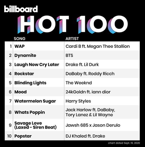 The #Hot100 top 10 (chart dated Oct. 3, 2020)