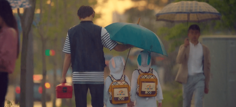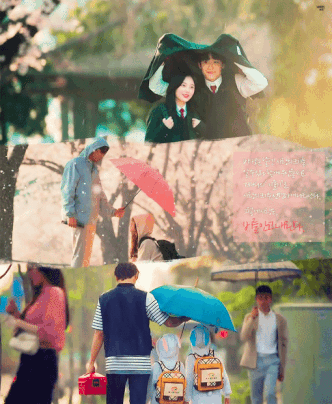 검정색 우산은 아들꺼 , 비맞고 자식들한테 우산 주고