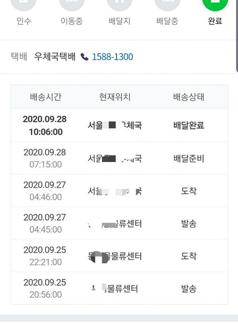 그래서 혹시나 하는 마음에 바로 판매업체측에 전화해 송장번호를 받았고 조회해봤으나 일반고객이 찾아가서 받을수없는 물류센터에 있었던겁니다.