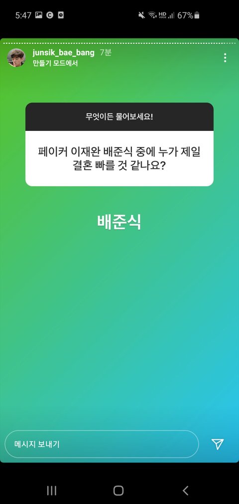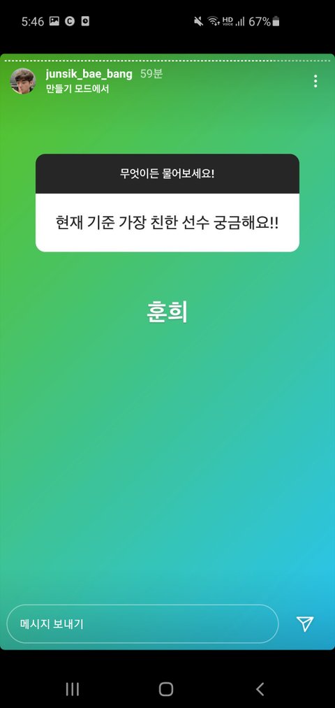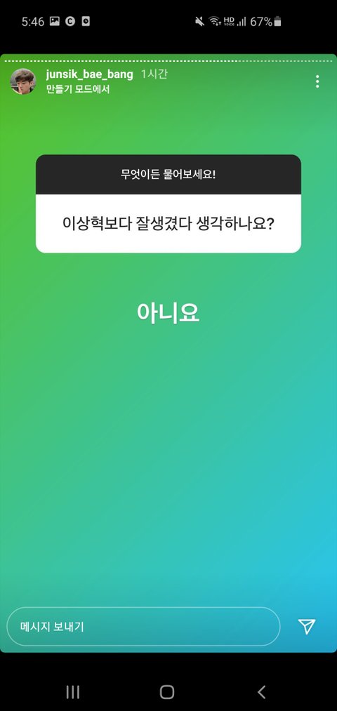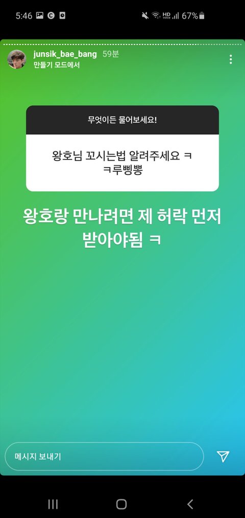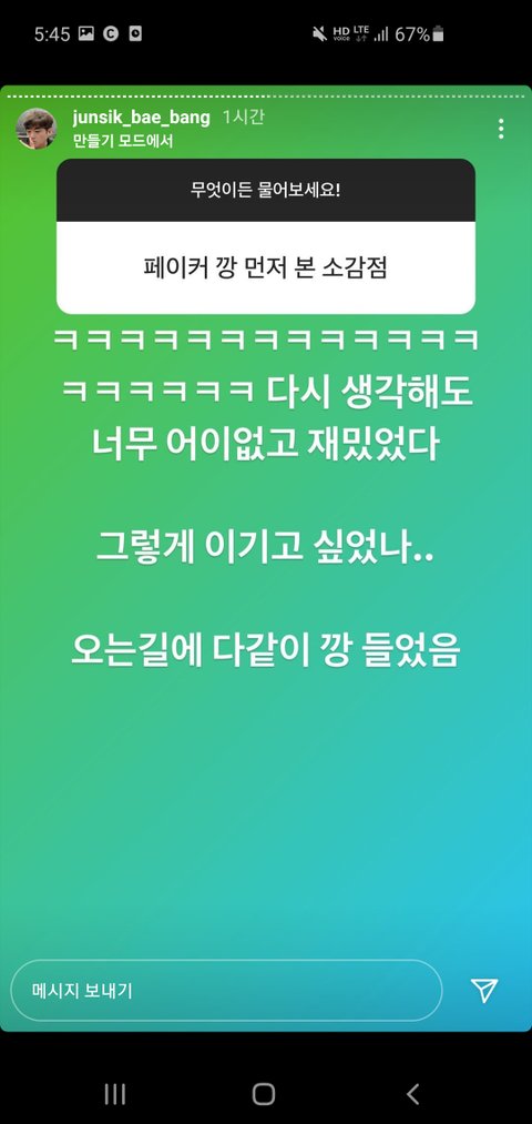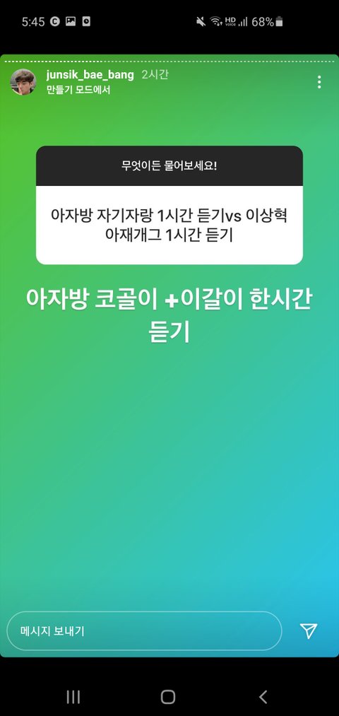 뱅 인스타스토리ㅋㅋㅋ