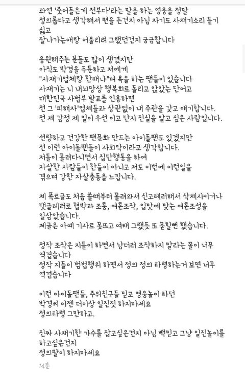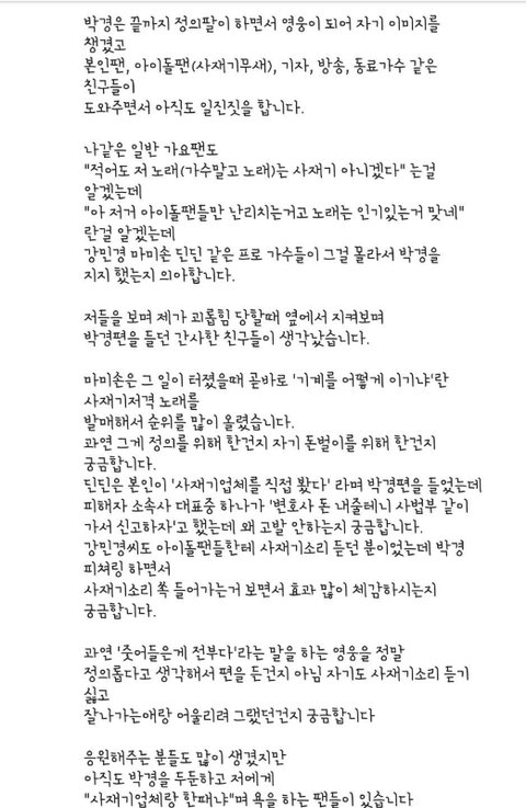 찬성) 학폭과 사재기는 별개의 문제인데다 다른 가수들과 아이돌팬들을 비하한 것은 선을 넘은 행위