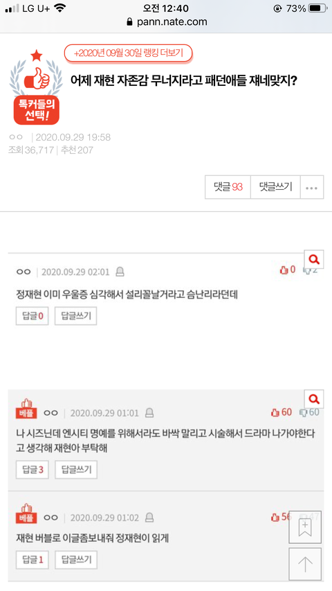저 글을 보게 됐는데 누가 왜 그렇게 재현이를??..