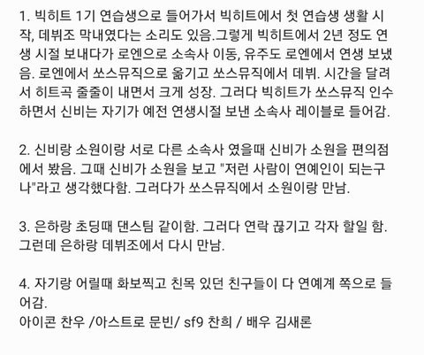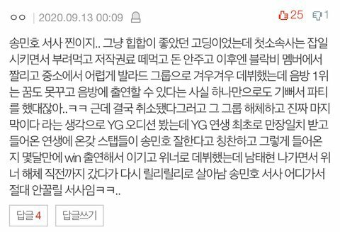 수정할거 하나. 블락비에서 잘린게 아니라 회사랑 민호부모님이랑 이견있어서 결국 민호가 팀에서 나온거임. 어딜봐서 잘릴 실력임?
