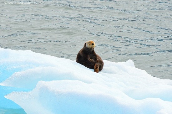 유빙 위에서 오수를 즐기던 해달 한 마리가