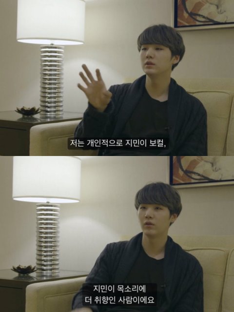 윤기는 예전부터 누누이 지민이의 보컬을 좋아한다고 이야기해왔음