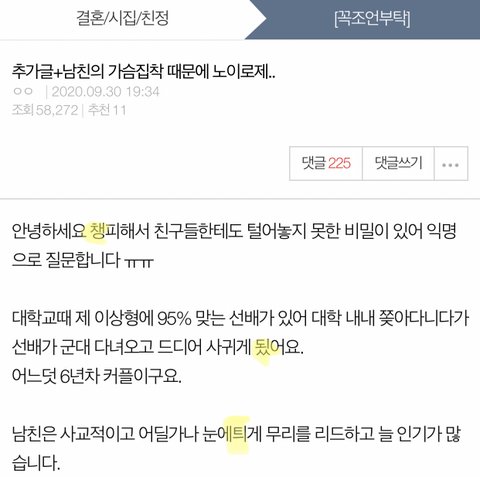 원글쓰니는 결국 남친이 볼까봐 글삭튀했답니다.