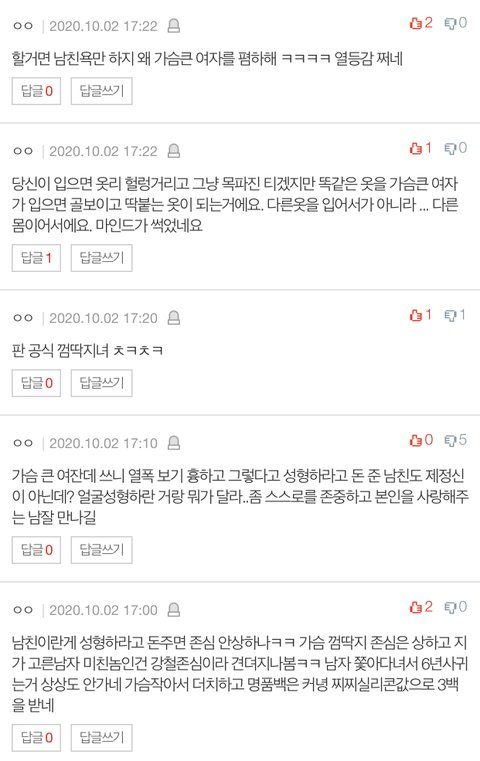 제 자존감 낮은편 아니에요 군데 남친이 자꾸 가슴가슴 하니까 제가 되게 모자란 사람이 된것 같아요.