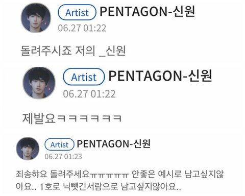 펜타공 신원: "돌려주세요 제발"