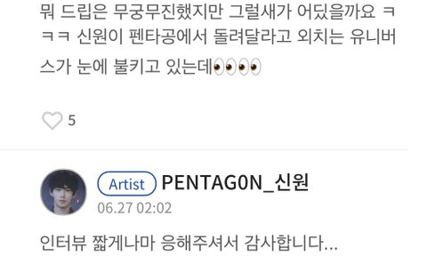 미련을 버리지 못하고 이번엔 펜타공_신원으로 나타남