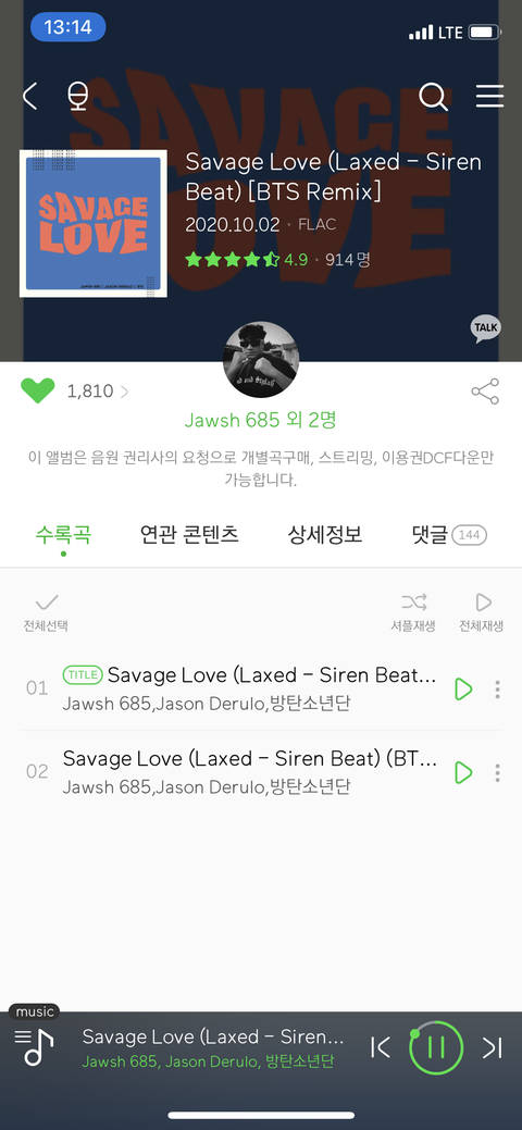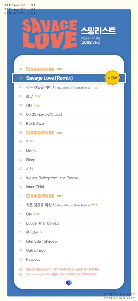 스밍 목록 바꼈고 곡 두개 들어있는걸로