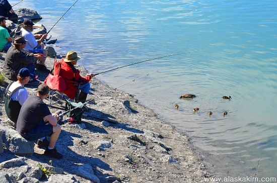 줄 맞춰 다른 낚시꾼한테 가는 청둥오리 가족