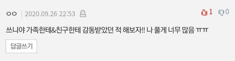 나는 친구한테 감동 받은건데 내가 친구관계 문제로 엄청 힘들고 욕 많이 먹었던 시기가 있었는데 솔직히 욕 먹는 애랑 선뜻 같이 다녀주기가 쉬운건 아니잖아.. 그때 친구랑 다른 반이긴 했는데 항상 학교 끝나고 같이 가주고 위로해줬을때 진짜 고맙고 감동이였어 그 친구랑은 아직까지 잘 지내는 중이고!