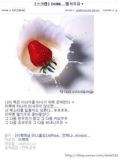 8. 은혁은 데뷔 전 미니홈피에 딸기우유 찬양글을 쓴 적 있슴