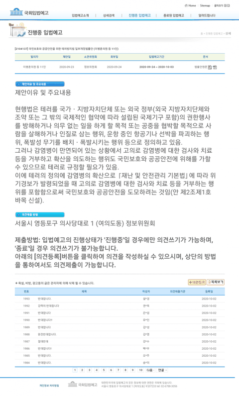 저 법까지 통과되면 강제적으로 중국산백신 맞아야할수도있어ㅜㅜㅜ모두 들어가서 반대좀해줘