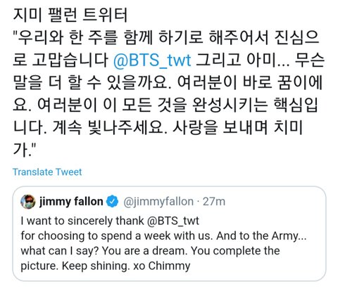 지민팰런쇼 너무 행복해 마음 풍족