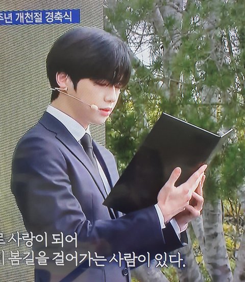 우리 이웃의 작은 영웅들 기리는 시라고 정호승 시인의 <봄길 > 낭독했는데 시 진짜 좋고 다니엘 음색 쩔고 수트핏에 자세 바른것까지 조카 멋져