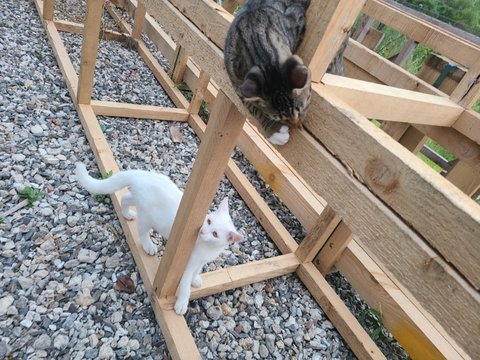 야외 대형 캣타워(?)에서 신나게 노는 냥이들