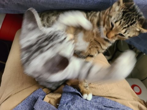 무릎 위에 올라와서 신나게 싸웁니다