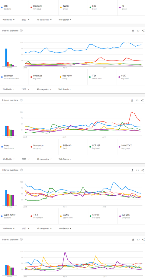 2020년 전세계에서 가장 많이 검색된 한국가수 TOP20